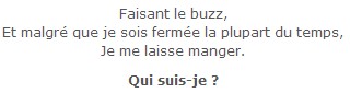 bah pareil que Marmotte ! Buzz l’éclair ! et puis en plus je cherchais un mot féminin à cause de “fermée” (je ne comprends pas le rapport d’ailleurs) !!!